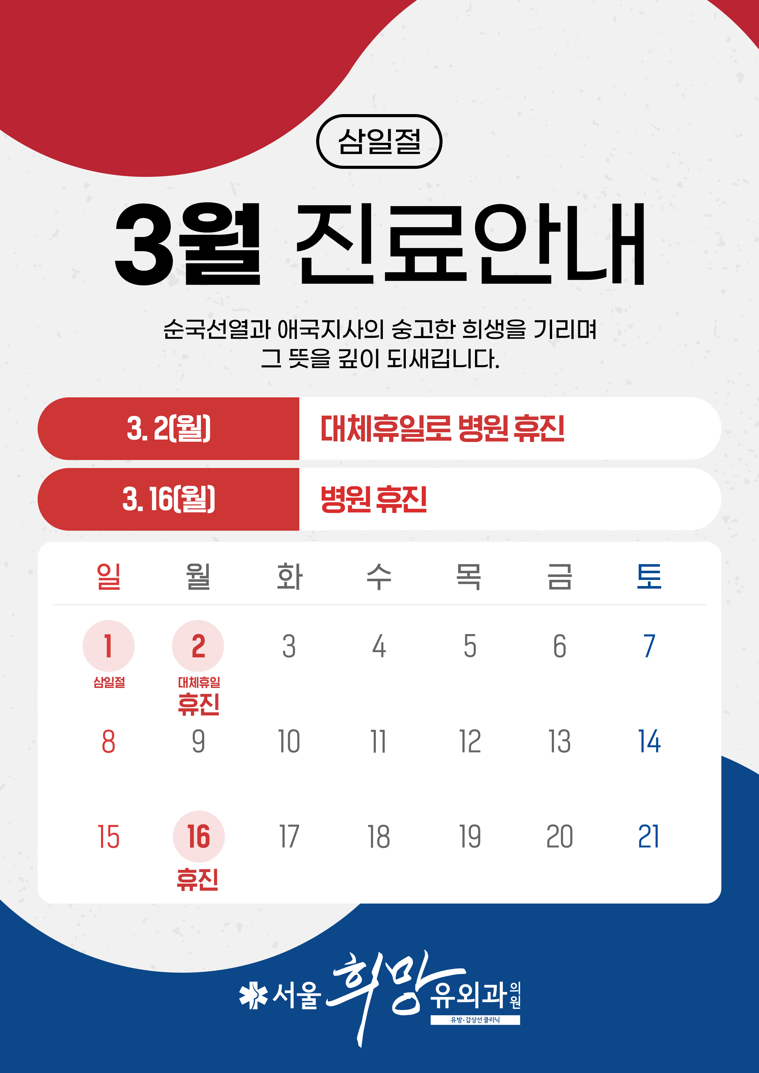 - 셋,100% 예약제로 편안하고 쾌적한 진료를 위해 힘쓰겠습니다.